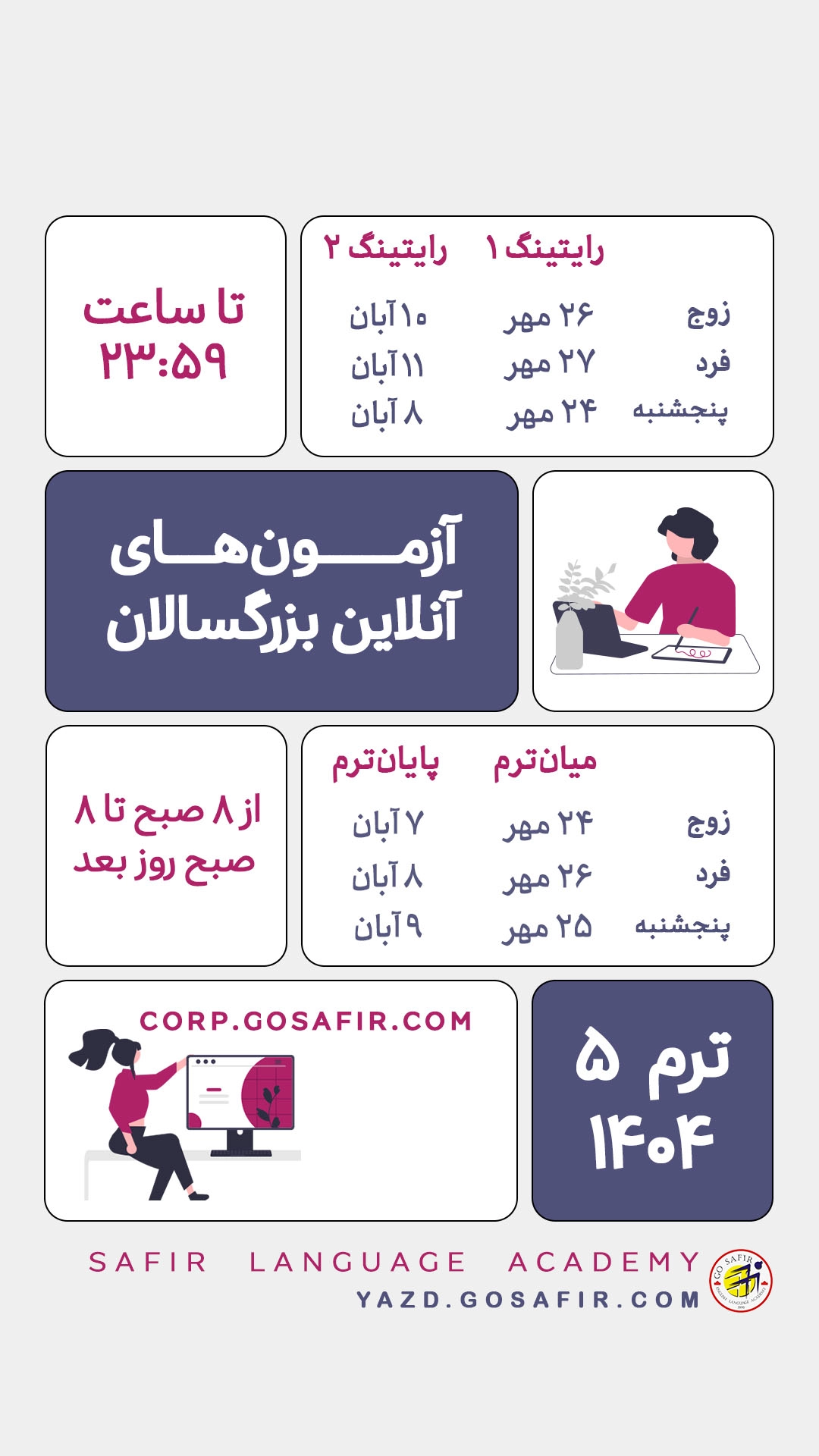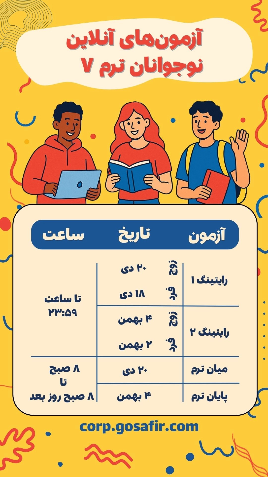 دسترسی شما برای انجام تکالیف آنلاین در آدرس corp.gosafir.com باز خواهد بود.